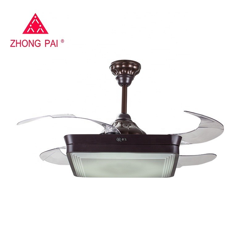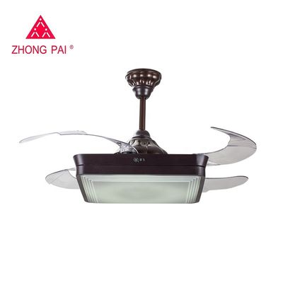 عاكس الضوء الكريستالي الصامت LED 36W مروحة السقف القابلة للسحب مع شفرات قابلة للطي