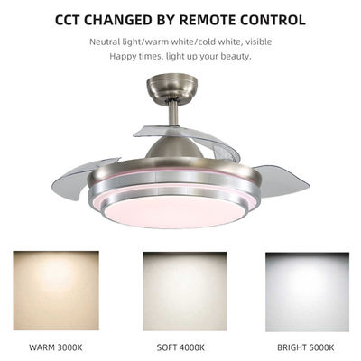 عاكس الضوء الكريستالي الصامت LED 36W مروحة السقف القابلة للسحب مع شفرات قابلة للطي