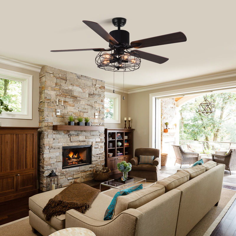 مروحة سقف عالية الجودة ذات أداء موثوق 52 بوصة ، مفتاح سحب مزخرف ، مروحة سيلينج مع الضوء